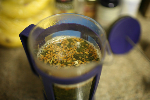 I’m down with a nasty cold, hopped up on Indian herbs, Genmaicha, and enough honey to drown in.