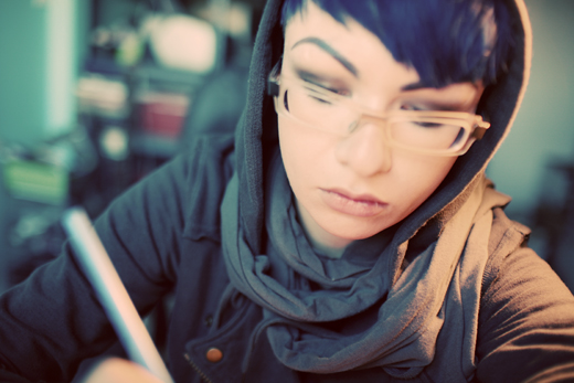 I’ve been working on my piece for Gag Me With a Toon these past couple of days and actually using the drafting table in the studio as opposed to the kitchen table, as I had for the past two months. Incidentally, the studio is the least-insulated room in the entire house, so protective measures must be taken, even with the space heater on full blast. Not pictured: Micron curled up in her bed right next to it.
